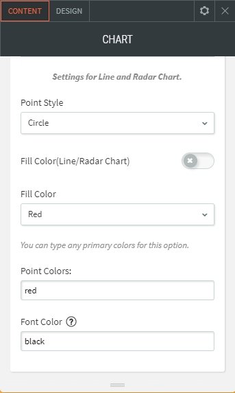 You can fill the color of Line and Radar Chart Layout. - It has different kinds of Point Style and type any kind of primary colors to change its color: