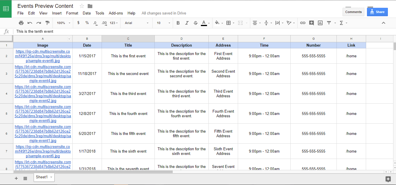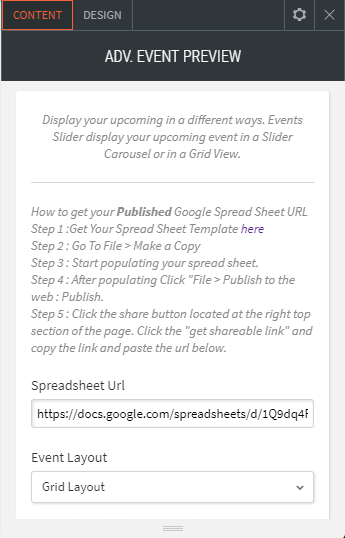 - Verwalten Sie Ereignisse über Google Spreadsheet.