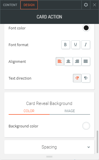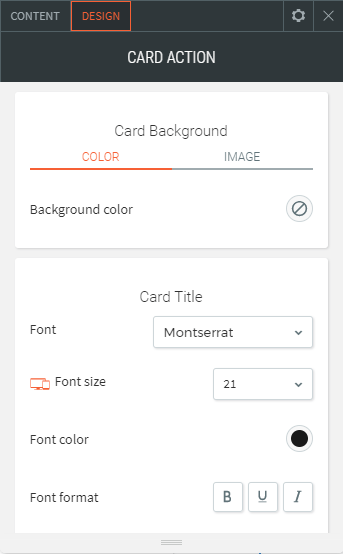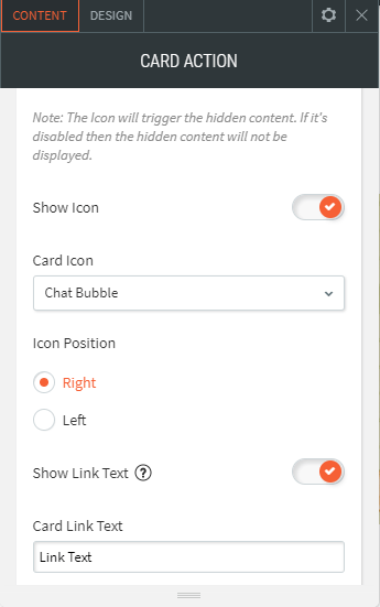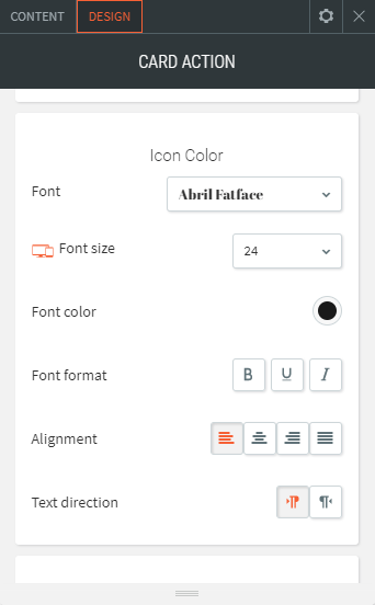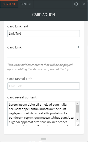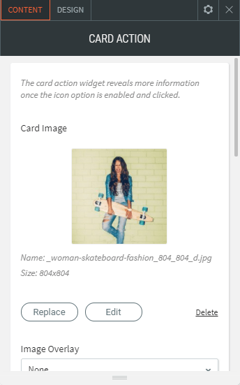 - Mit dem Card Action Widget können Sie einzigartige Bildüberlagerungseffekte anwenden und verschiedene nützliche Symbole wie Info, Navigation, Überschrift, Nachricht, Einkaufswagen und vieles mehr anzeigen.