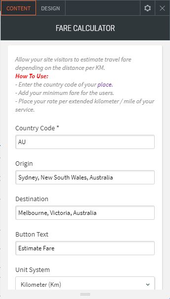 Ermöglichen Sie Ihren Website-Besuchern, den Reisepreis in Abhängigkeit von der Entfernung pro KM zu schätzen.