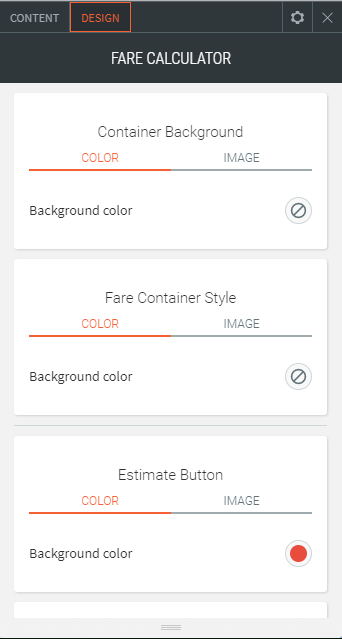 - Sie können die Hintergrundfarbe oder das Bild des Hintergrunds und der Schätzungsschaltfläche des Tarif- und Kartencontainers ändern.