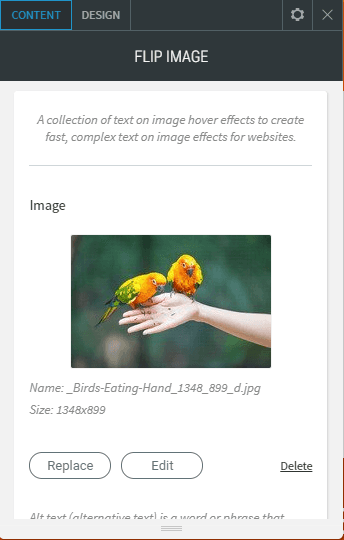 - Mit unserem Flip Image Widget können Sie Ihren Bildern eine kurze Beschreibung hinzufügen.
