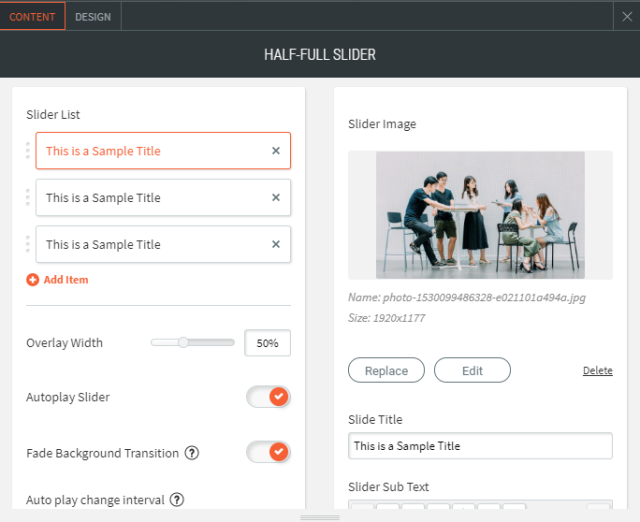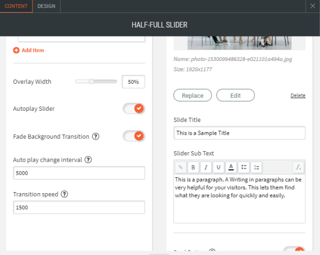 - Sie können dem Schieberegler keine zusätzlichen Inhalte hinzufügen.