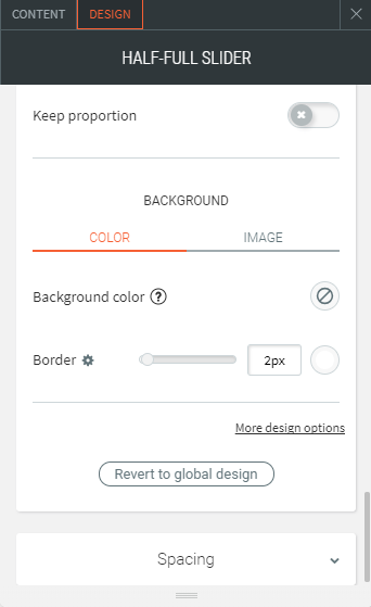 Es erscheint ein Schieberegler mit einem halbfarbigen Overlay-Design mit einem einfachen Übergang.