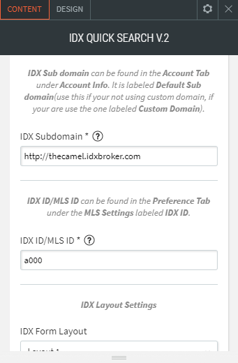 - Wählen Sie das bevorzugte IDX-Layout passend zum Design Ihrer Website
