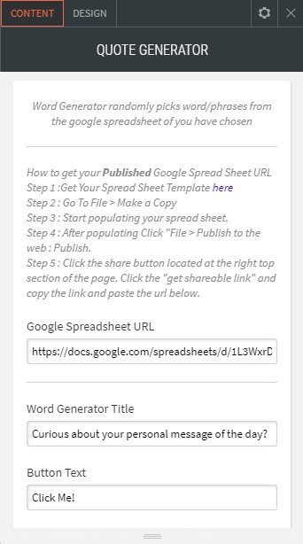 Glückskeks-ähnliches Widget, mit dem Ihr Besucher sein Glückszitat für den Tag preisgeben kann
