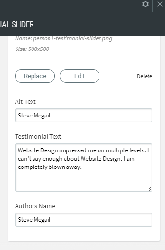 - You can add the customer's image, Name and Testimonial.